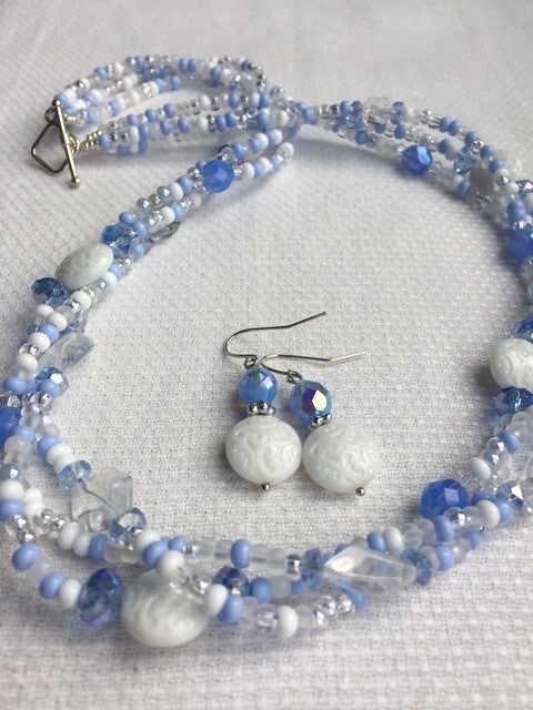BLUE NECKLACE WITH MATCHING EARRINGS